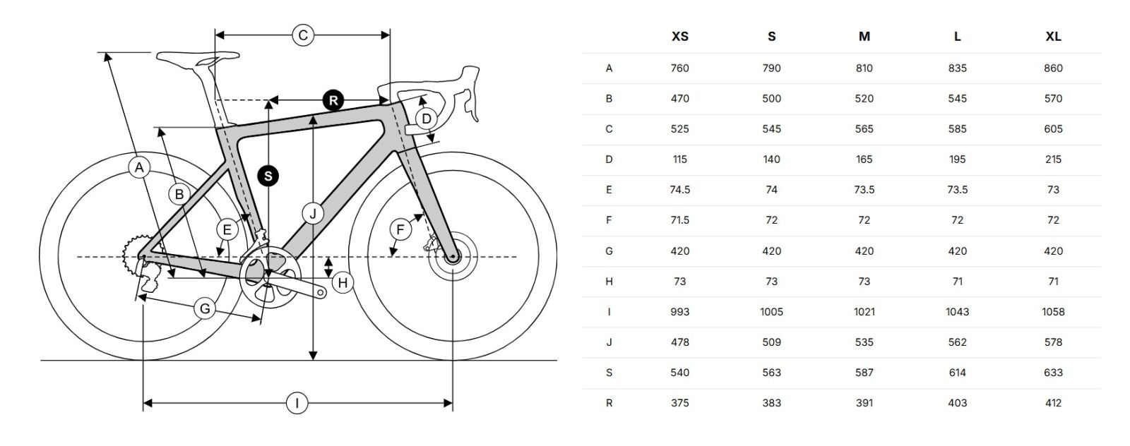 | S | 54 cm | 169 - 177 cm |